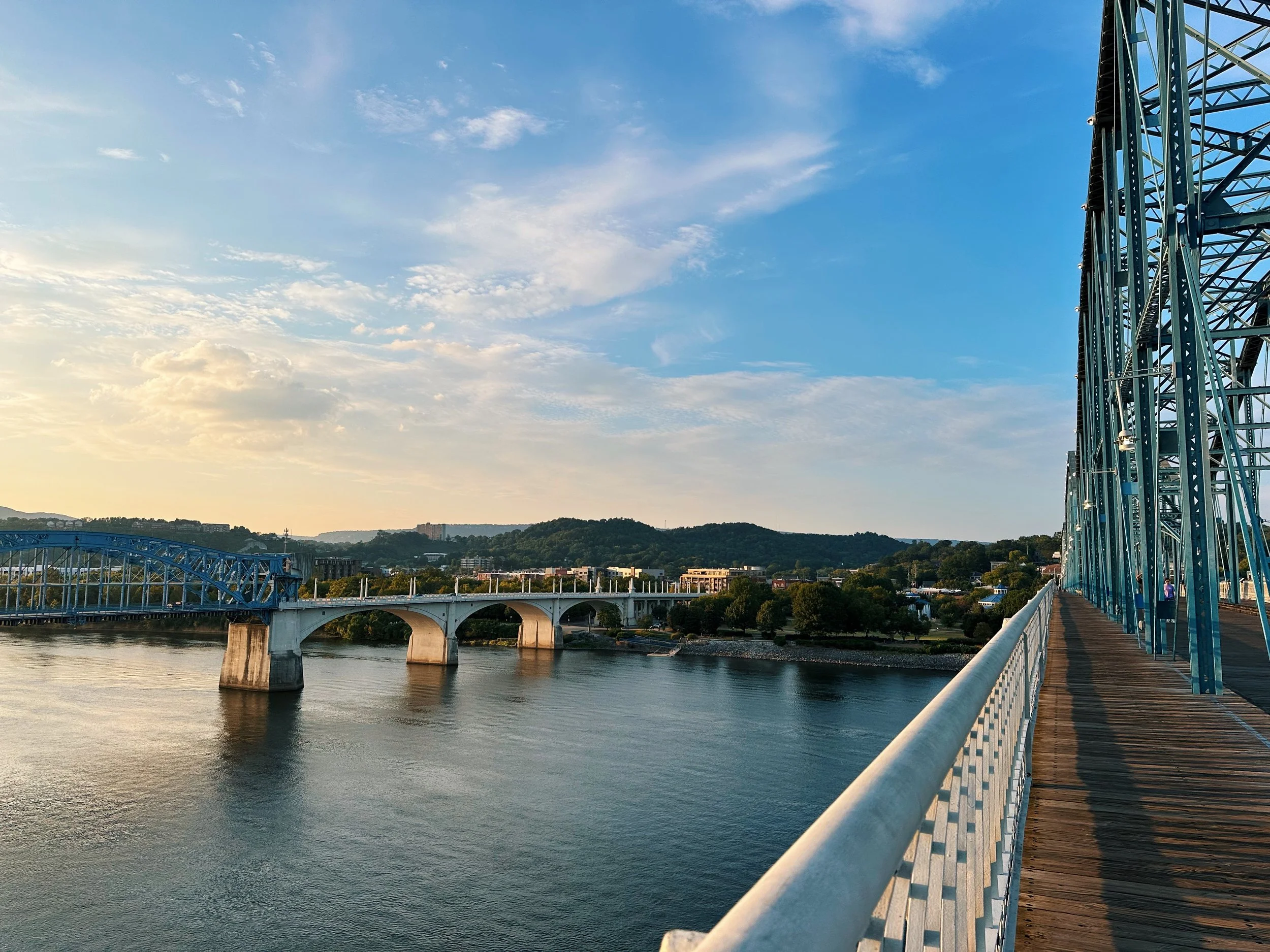 If I lived in Chattanooga, I would definitely walk across this bridge everyday on my walks. There were tons of people out, and you can easily walk across the whole thing. On either side of the bridge you can see the beautiful city parks on the shoreline - there are so many! I think Chattanooga does an incredible job with its public spaces - they’re well maintained and feel very safe.